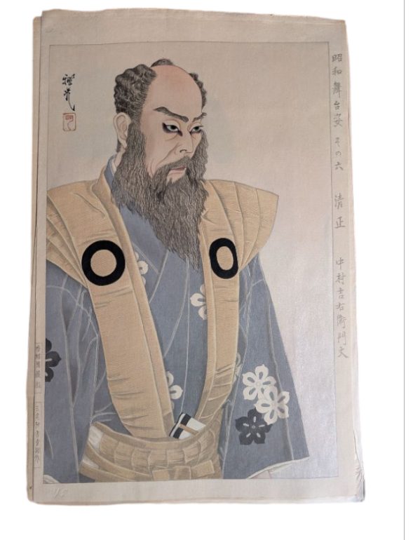 Original Japanese Woodblock Print: OLady Masaoka, Nakamura Utaemon V, Aspects of Showa Period Stage; Limited Edition (75/200). RARE; great impression with vibrant colors The print does not sell with the original brown dustcover because there are five prints enclosed in one dustcover. If a five are purchased by one buyer the original dustcover will be included along with all original inserts.