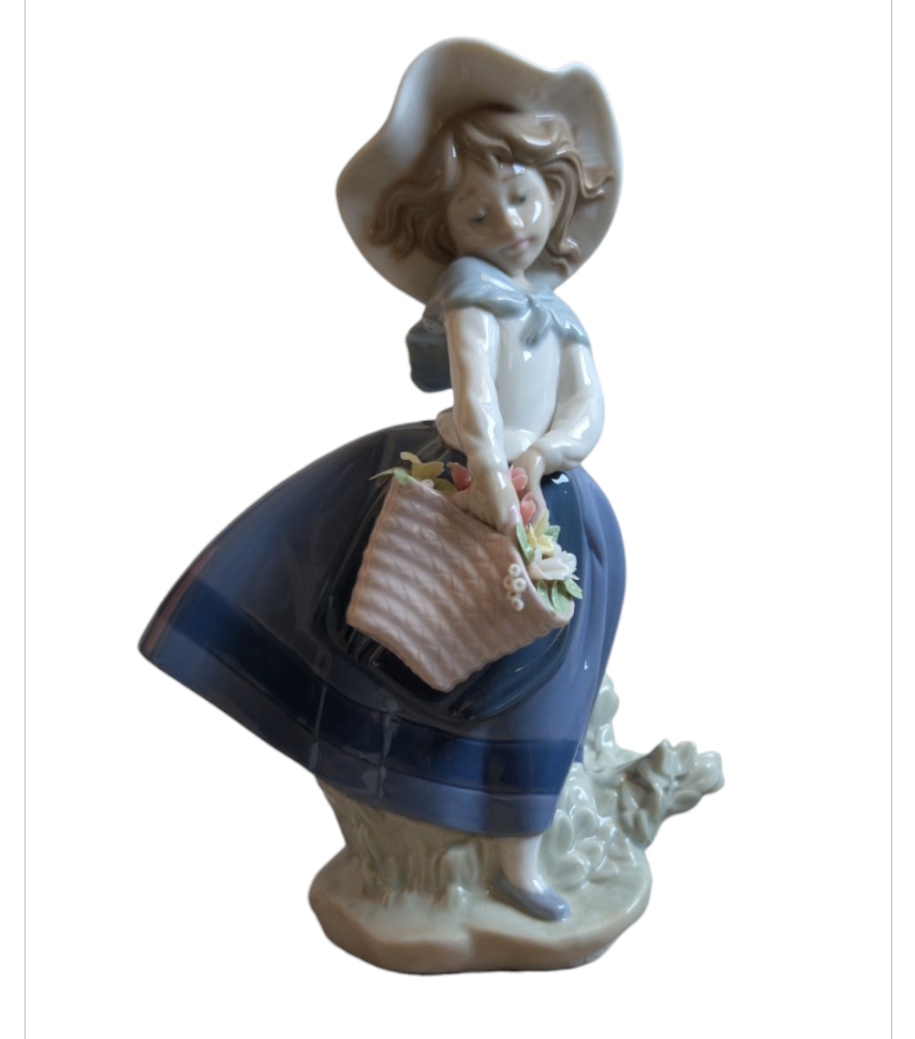 Vintage Lladro 1978 “Naugthy Girl with Straw Hat” Collectible Porcelain Figurine #5006.